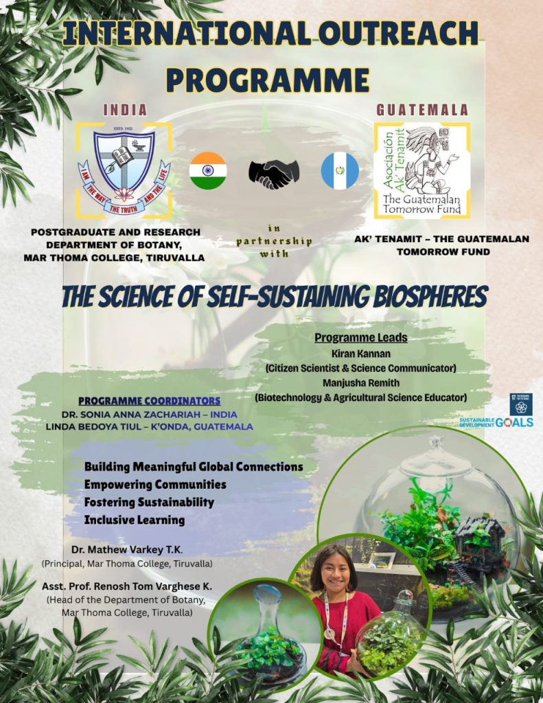 Postgraduate and Research Department of Botany, Mar Thoma College, Tiruvalla, in partnership with AK’ Tenamit – The Guatemalan Tomorrow Fund, presents:
