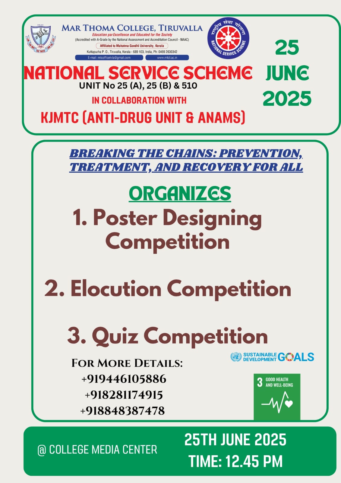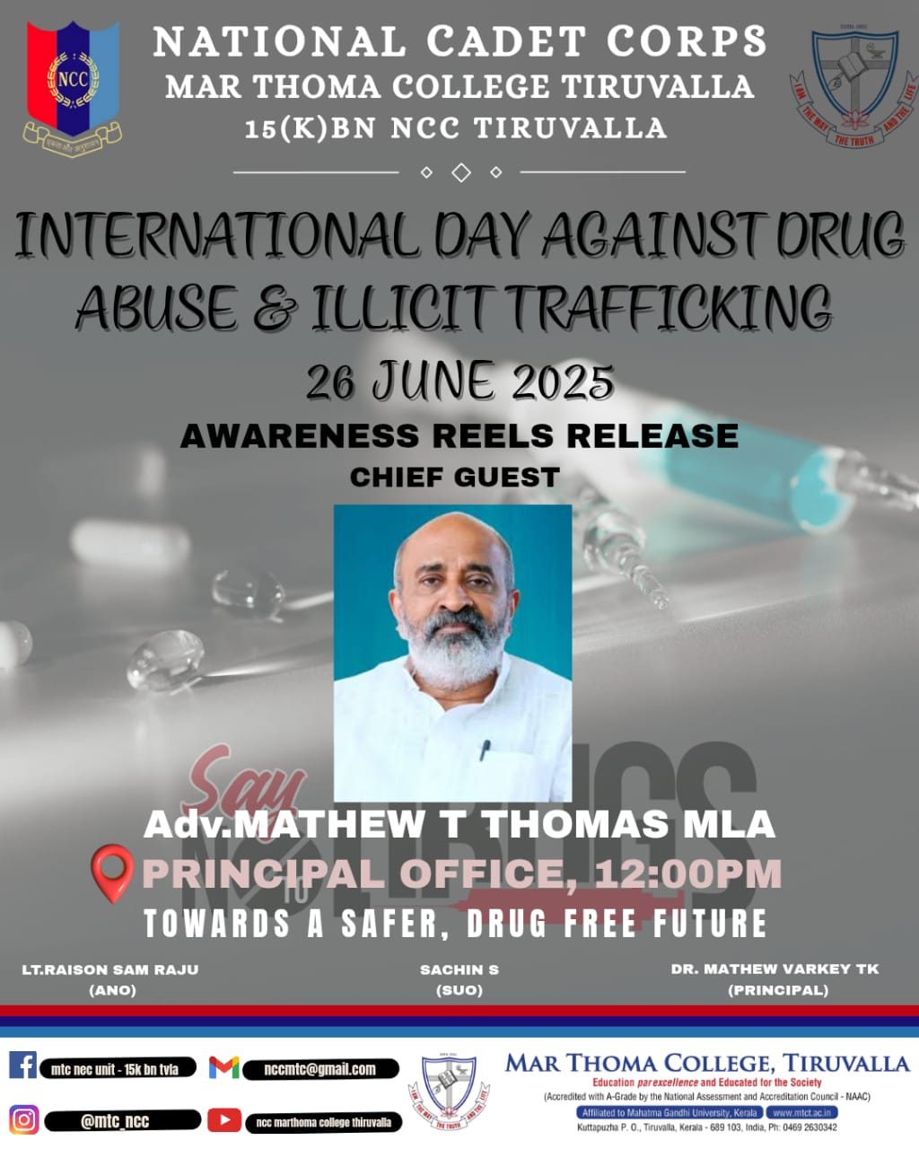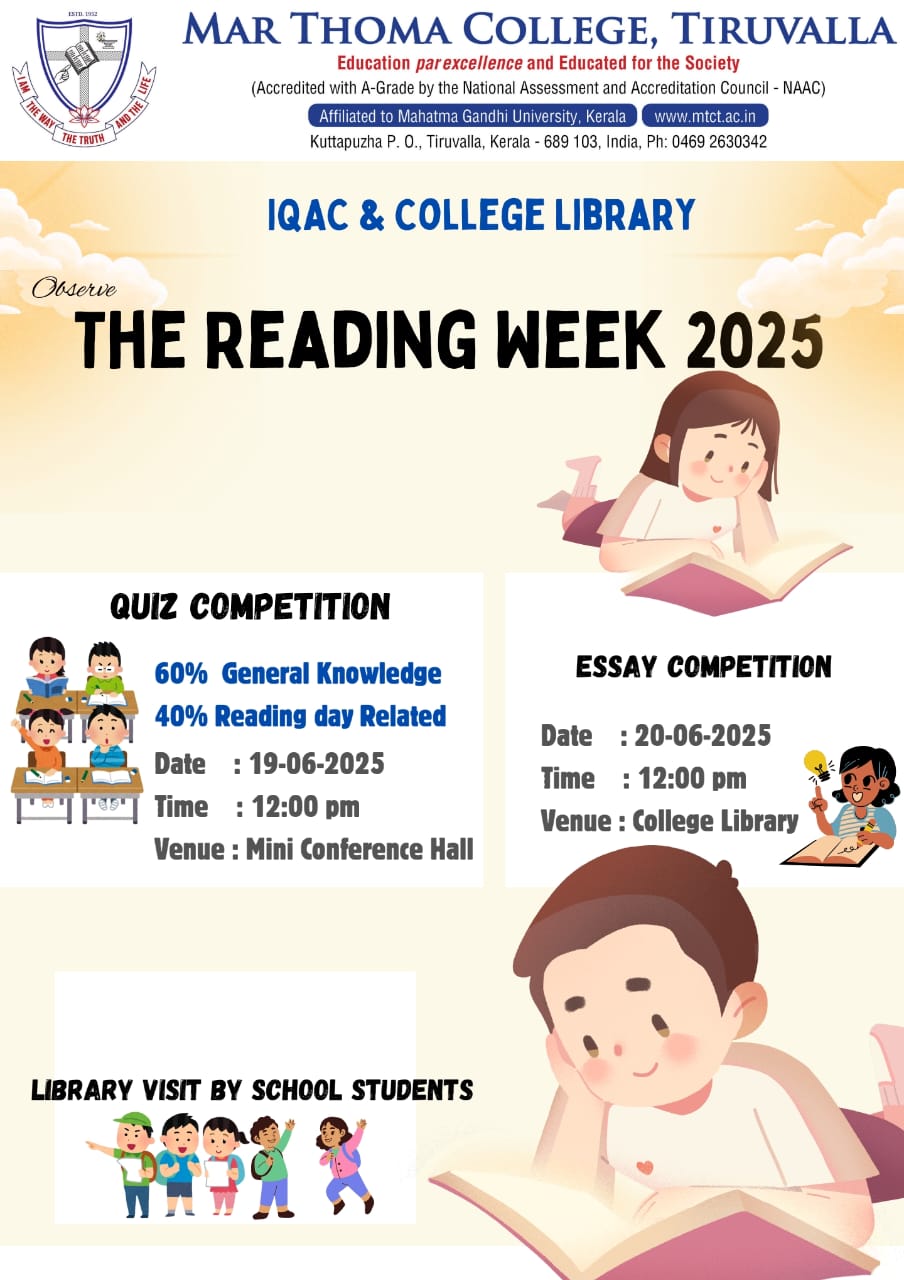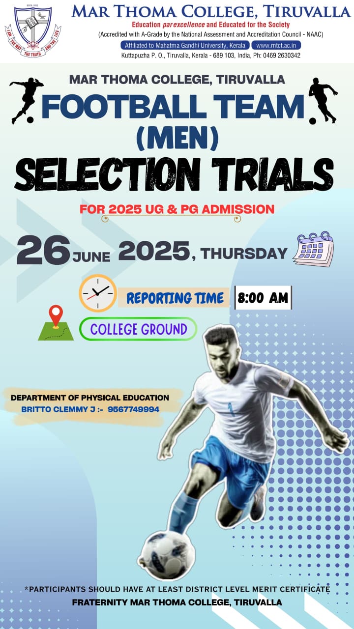 The Opening Assembly and Student Orientation Programme of 2025-26 academic year will be held on June 02, 2025, at 9:30 am in the College Auditorium. The Chief Guest, Sri. George Cheriyan, alumnus and social activist, Member of Consumer Complaints Council, ASCI, will address the gathering. All students should attend the meeting. Principal