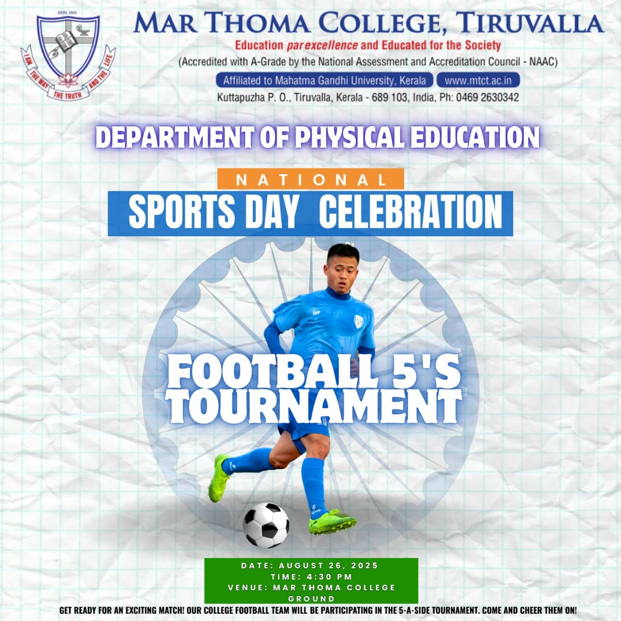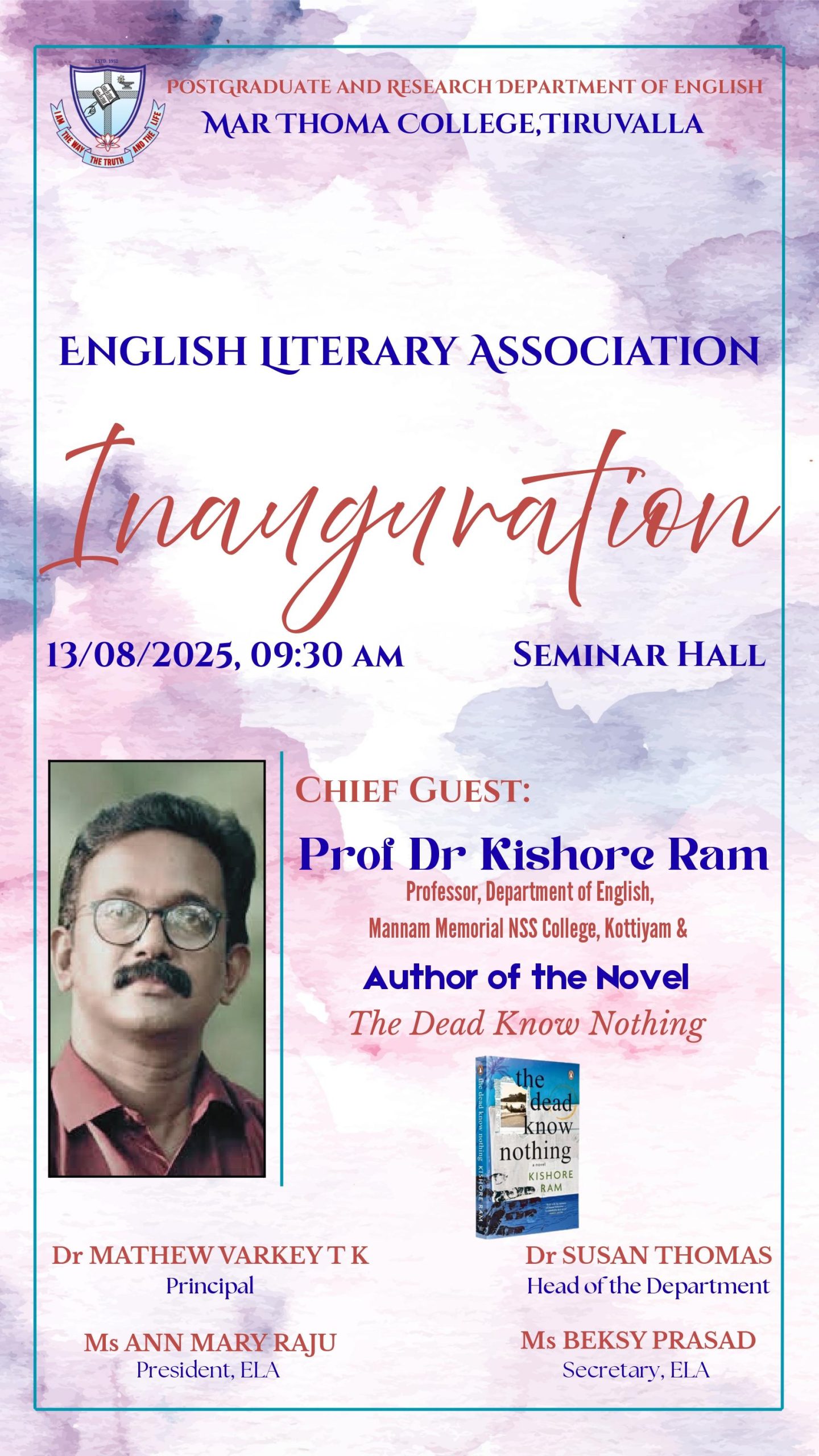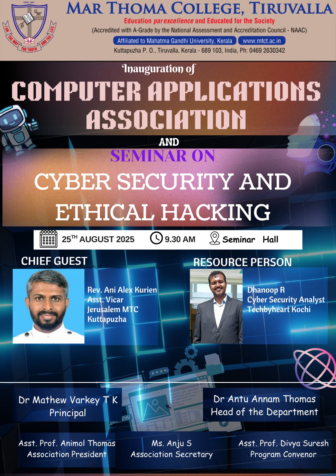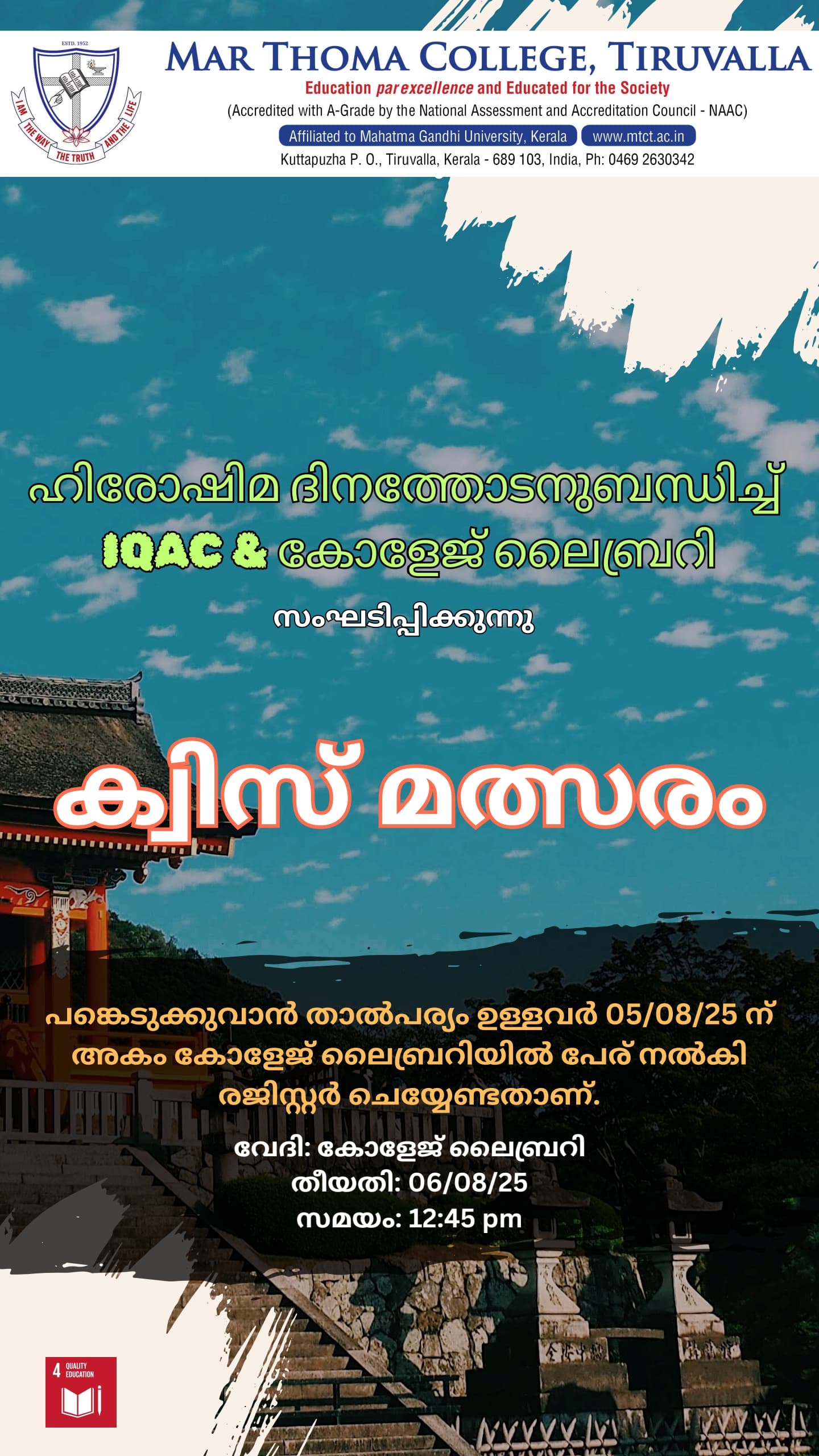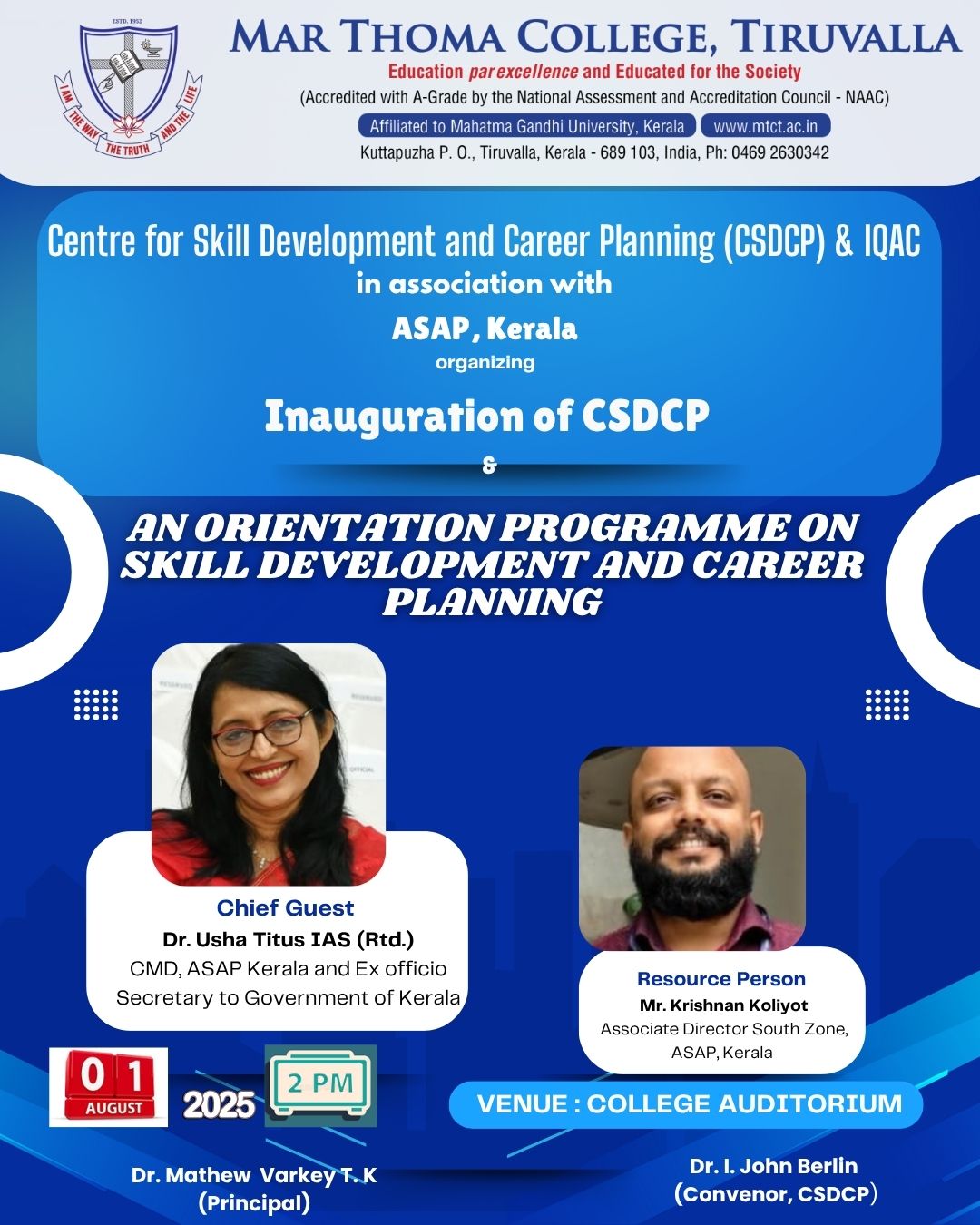 Department of Physics organises an Orientation Programme on 28th July, 2025. Time : 10.00 am. Venue: Seminar Hall, Dr. Alexander Mar Thoma Memorial Golden Jubilee Block. The main speaker is Prof. Thomas T. George, Former Faculty, Department of Physics, Mar Thoma College, Tiruvalla. There will be a Counselling session by Ms. Janet Mariam Thomas, Jeevani Centre for wellbeing, Department of […]