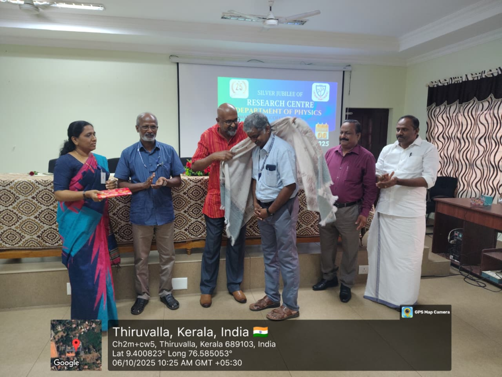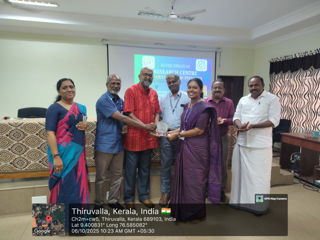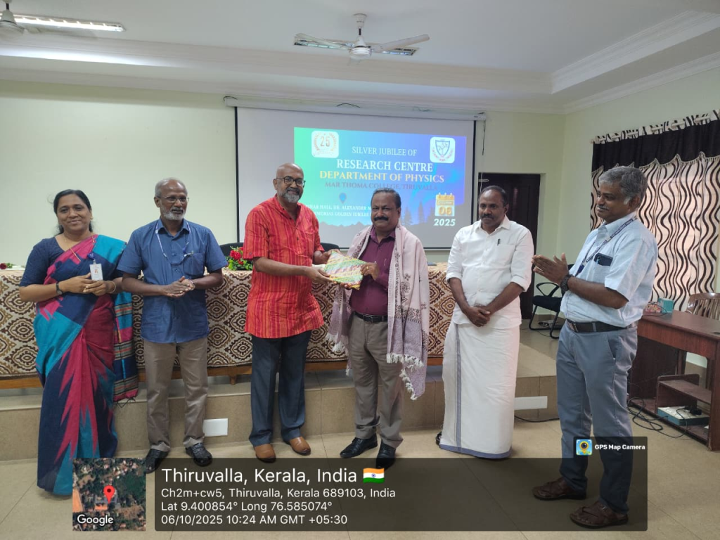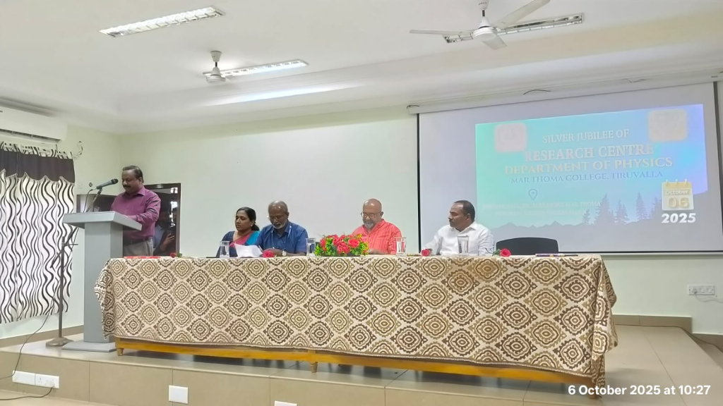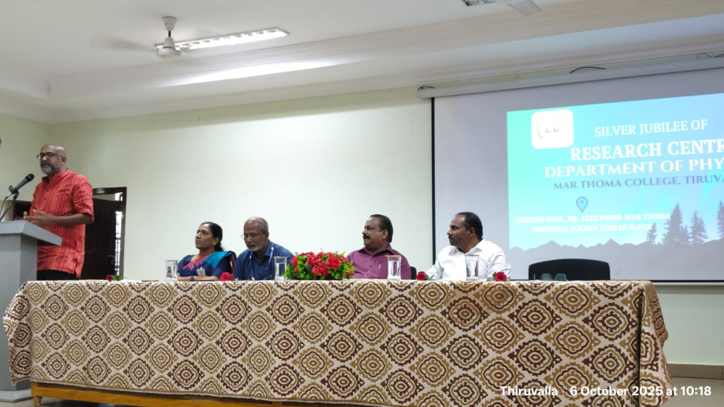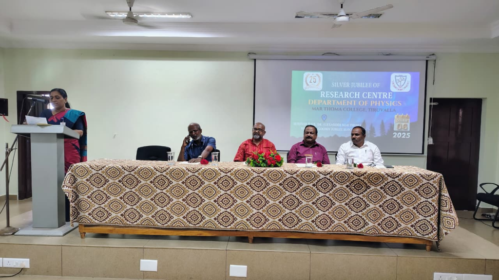 As part of the Silver Jubilee celebrations of the Research Centre of the Department of Physics, a One-Day Seminar and Oral Presentation Competition was organized on Monday, 6 October 2025, at 9:30 a.m. in the Seminar Hall, Dr. Alexander Mar Thoma Memorial Golden Jubilee Block, Mar Thoma College, Tiruvalla.